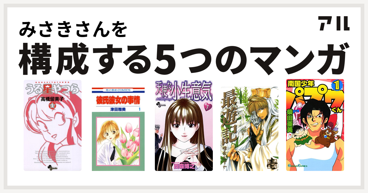みさきさんを構成するマンガはうる星やつら 彼氏彼女の事情 天使な小生意気 最遊記 南国少年パプワくん 私を構成する5つのマンガ アル