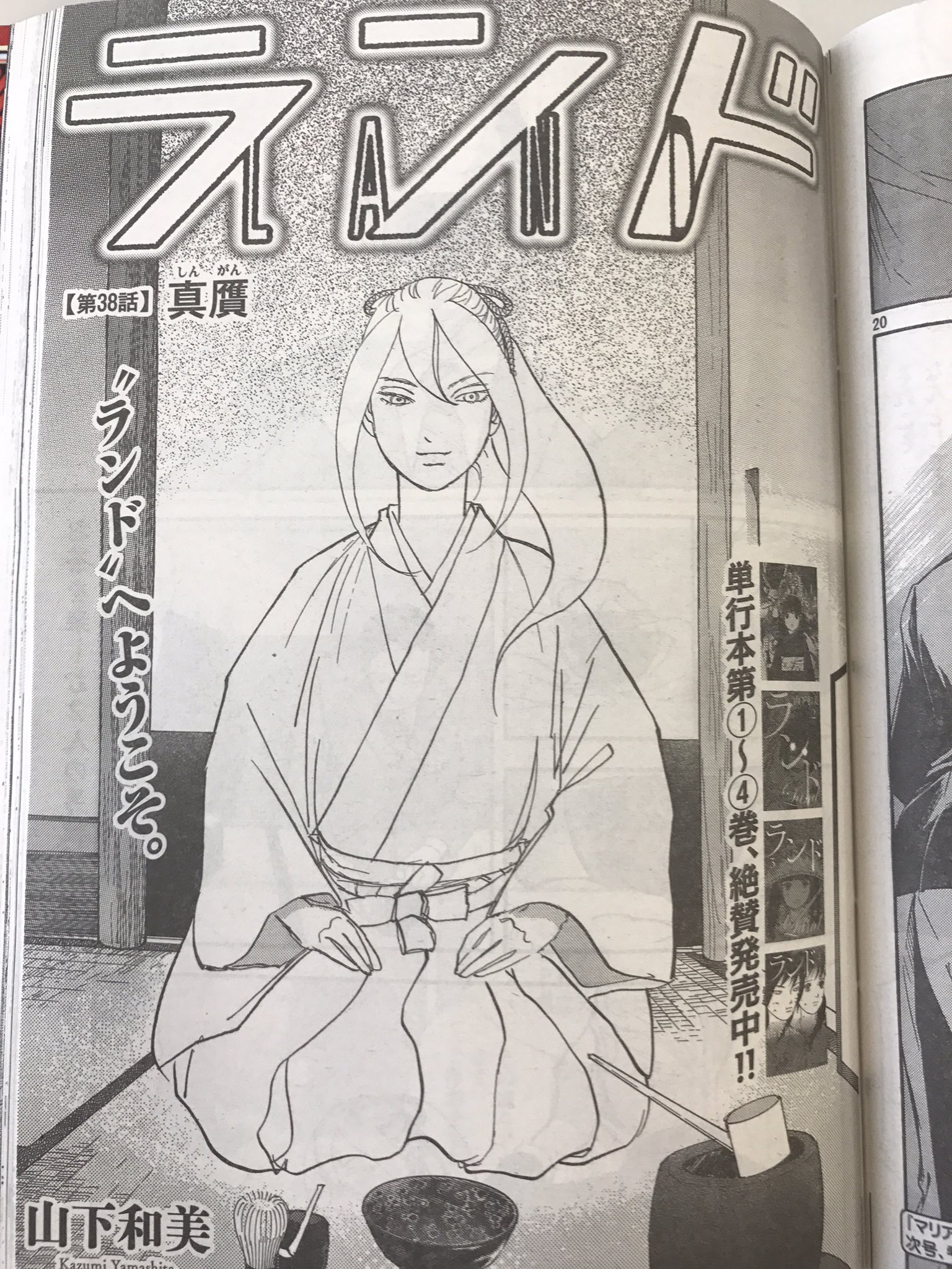山下和美 ランド 10巻発売中 No Twitter 明日6月29日発売のモーニング31号にランド最新38話が掲載されています 前話のラストに引き続き 何やらおごそかな茶室からスタート 凛々しい和音さまと茶道 ほれぼれするほど相性バツグンです