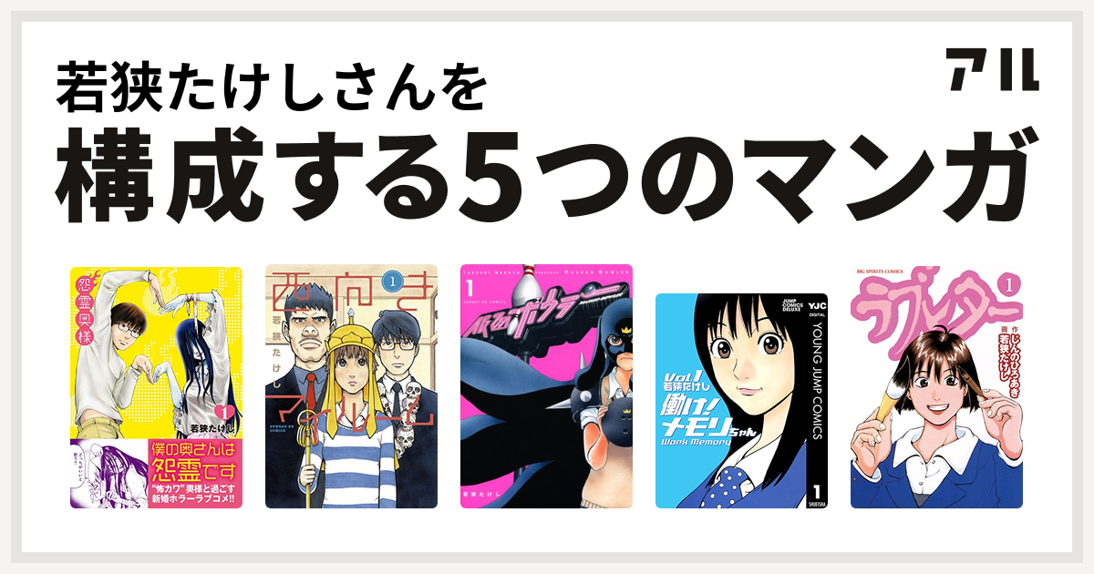 若狭たけしさんを構成するマンガは怨霊奥様 西向きマイルーム 仮面ボウラー 働け メモリちゃん ラブレター 私を構成する5つのマンガ アル