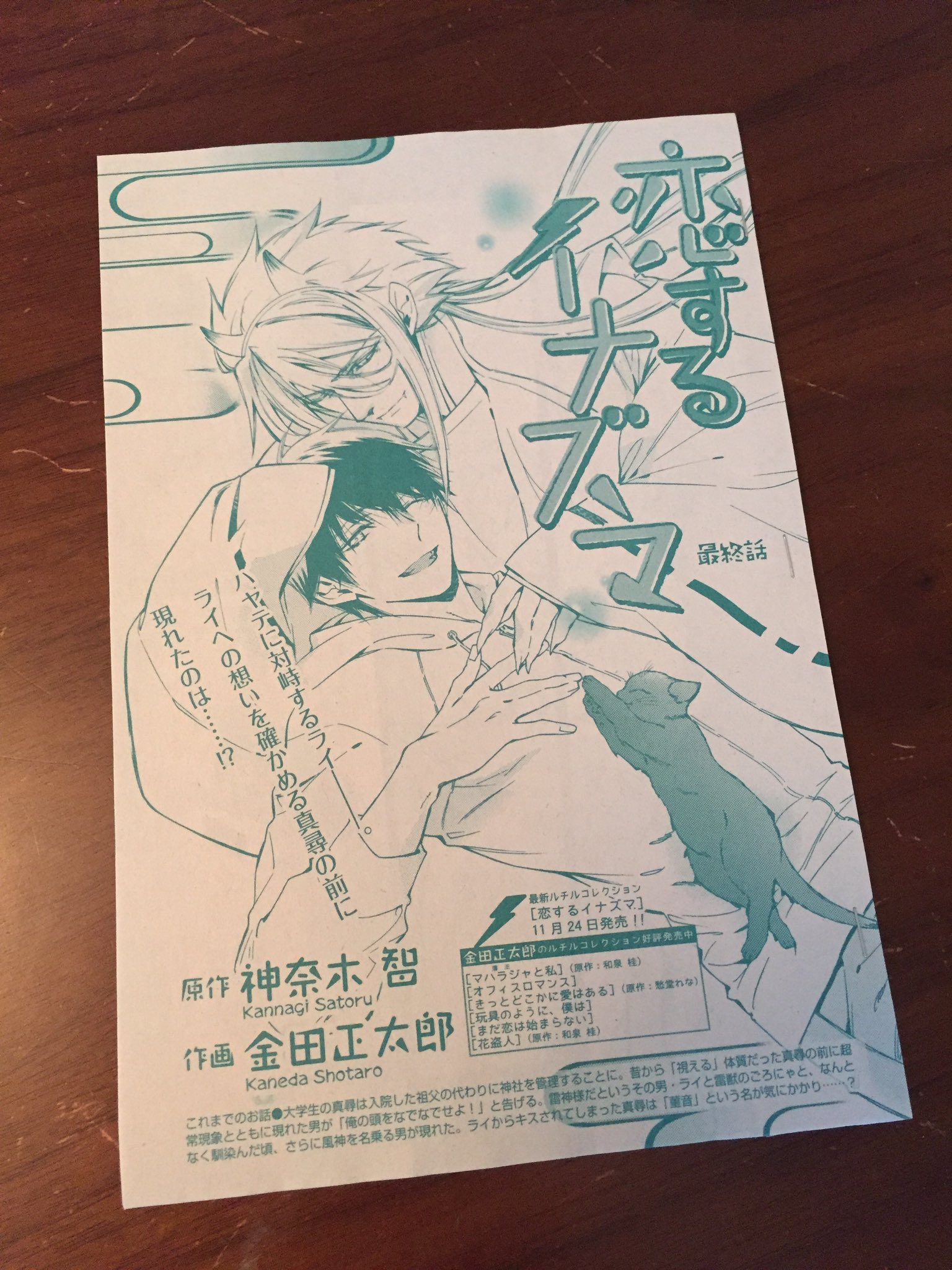 神奈木智 7月22日 災厄は僕を好きすぎる 8巻発売 على تويتر 明日発売の雑誌ルチルにて 神奈木原作 金田正太郎様作画による連載漫画 恋するイナズマ 最終回が掲載されています 大変楽しく書かせていただきました 雷神 大学生の恋の行末 どうぞよろしくお願いし