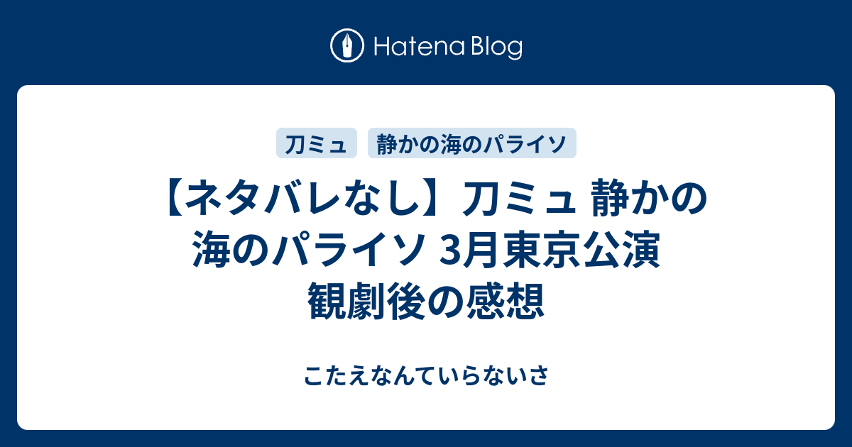 ネタバレなし 刀ミュ 静かの海のパライソ 3月東京公演 観劇後の感想 こたえなんていらないさ